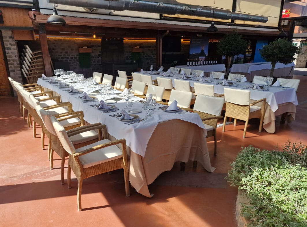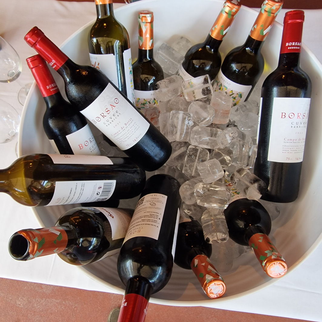 -Bebida: tinto Borsao barrica, perteneciente Denominación de Origen Protegida Campo de Borja y blanco BOLÉ sobre lías, perteneciente a la Denominación de Origen Protegida Campo de Borja.