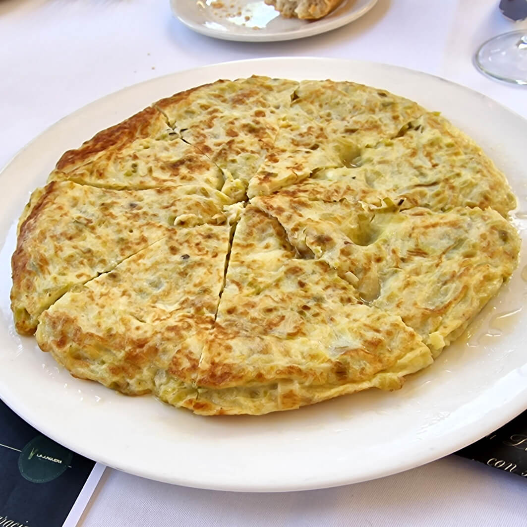 Tortilla cremosa de huevos ecológicos Gazol de Lanaja con ajos tiernos de Ricla.
