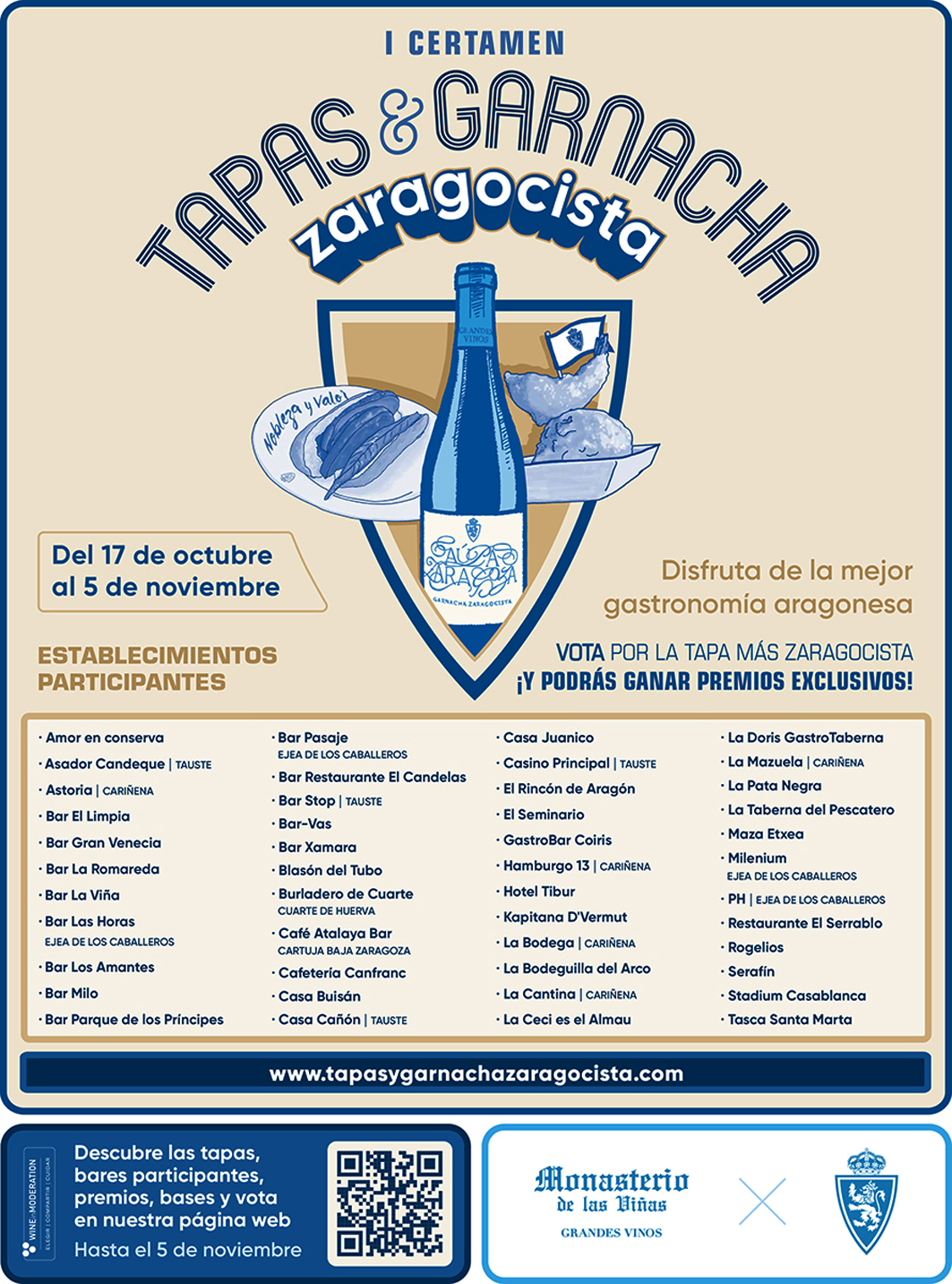 Carlos Arranz, director comercial y de marketing del Real Zaragoza, ha comentado: “Fútbol y Bares. Zaragoza y Garnacha. Dos combinaciones que van de la mano: los zaragocistas viendo o comentando los partidos en el bar con el resto de parroquianos; el valle del Ebro y su variedad de uva característica. Este primer certamen quiere poner en valor la hostelería como punto de encuentro para nuestros aficionados, todo ello maridado con tapas con sabor de Aragón y la garnacha zaragocista de Grandes Vinos”.