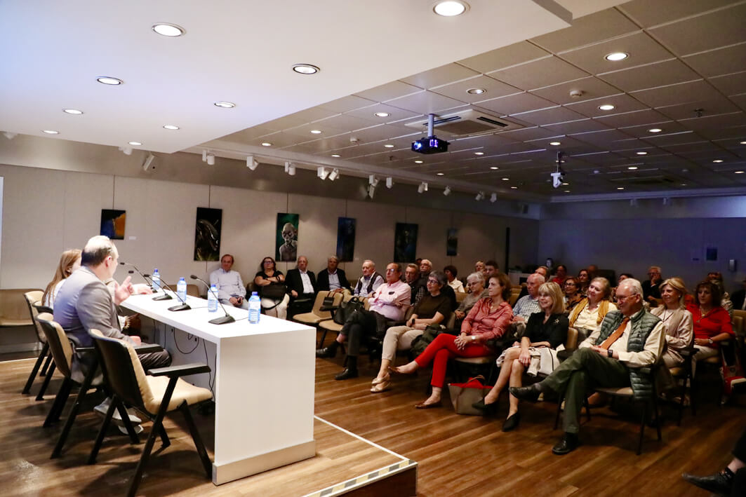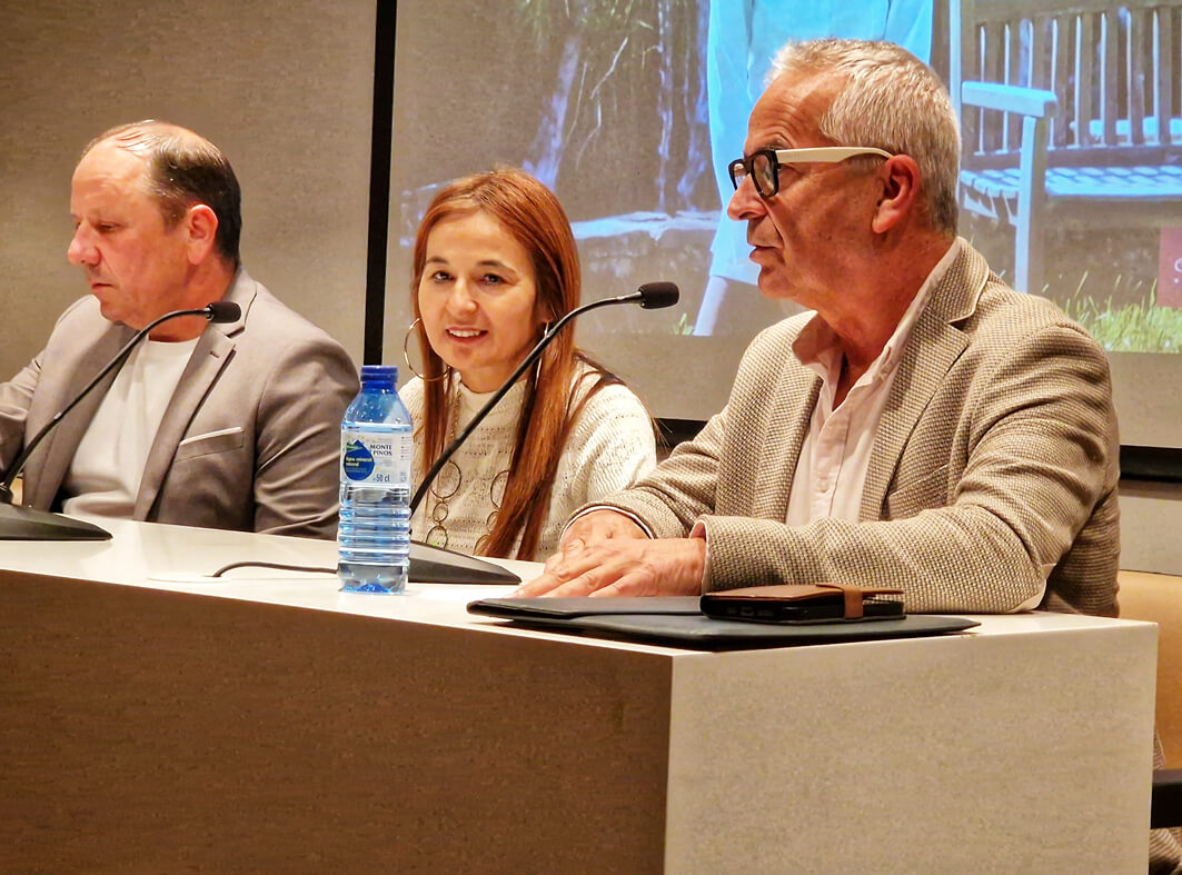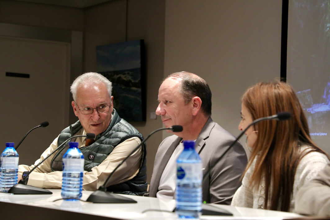 De izquierda a derecha: Sebastián Roselló, María José Meda (restaurante El Batán) y Miguel Ángel Vicente (académico y director de la charla). Foto: Eduardo Bueso.