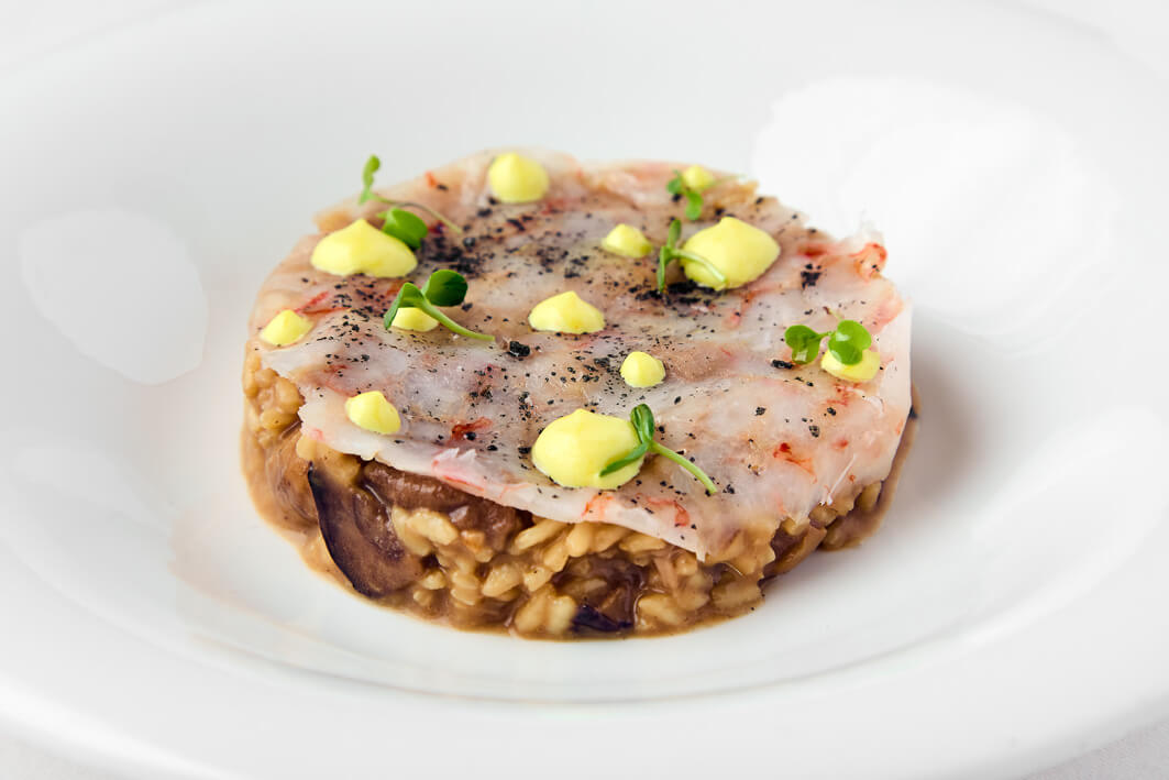 Para está estación, el restaurante ha buscado dar un protagonismo especial a la seta, uno de los ingredientes estrella del otoño, jugando con técnicas modernas e inspiración en la cocina mediterránea. De esta manera, apuesta por un arroz cremoso Maratelli de origen Cálial de guiso de boletus de temporada y velo de gambones, rematado con un toque de all-i-oli de azafrán que fusiona la conexión entre el mar y montaña.