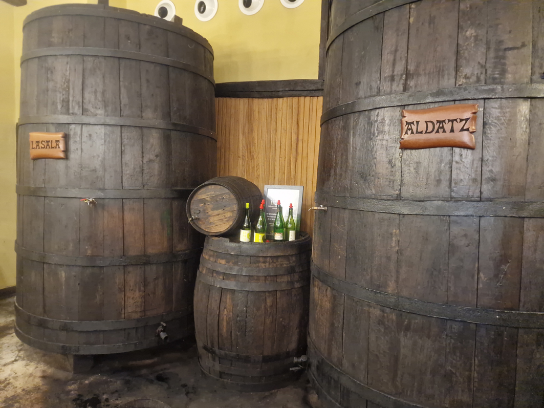 La jornada comenzó en un ambiente distendido en un patio, junto a las kupelas, donde la sidra se sirvió siguiendo el ritual tradicional. Al grito de “txotx”, los asistentes se acercaban a las barricas para escanciar directamente la sidra, acompañando el momento con un aperitivo de clara influencia vasca: chorizo a la sidra y croquetas recién hechas, dos bocados que abrieron el apetito y marcaron el carácter de la experiencia.